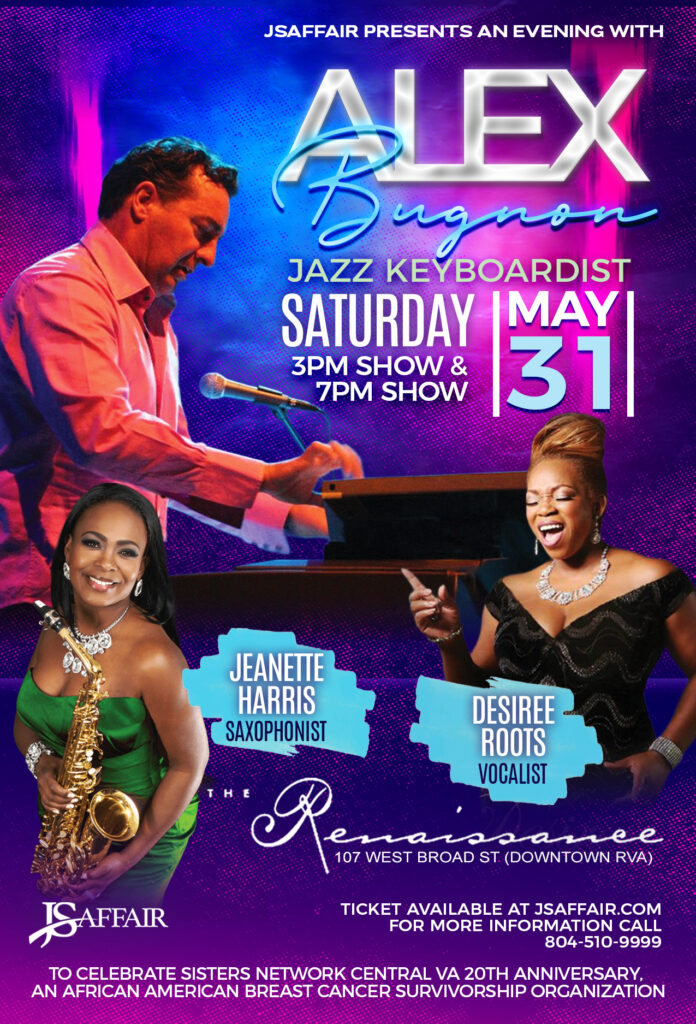 Sunday, May 3, 2026 4PM ShowFor more info: Call 804-510-9999 Powered by For more information or to purchase a ticket, please contact 804.510.9999 PAST EVENTS Alex Bugnon ...Read More Jonathan Butler ...Read More Will Downing ...Read More Jeffrey Osborne ...Read More Will Downing ...Read More Jeffrey Osborne ...Read More Gerald Albright ...Read More Mindi Abair ...Read More Be“la Dona ...Read More Norman Brown ...Read More Will Downing ...Read More Boney James ...Read More (no title) ...Read More Gerald Albright ...Read More Maysa ...Read More Jonathan Butler ...Read More Peter White ...Read More Keiko Matsui ...Read More Norman Brown ...Read More Alex Bugnon ...Read More Jonathan Butler ...Read More Peobo Bryson ...Read More Brian Culbertson ...Read More Johnny Gill ...Read More Jeffrey Osbourne ...Read More Marion Meadows ...Read More Avery Sunshine ...Read More Freddie Jackson ...Read More Lonnie B ...Read More Alex Bugnon ...Read More Loose Ends ...Read More Pieces of a Dream ...Read More Stylistics ...Read More The Manhattans ...Read More